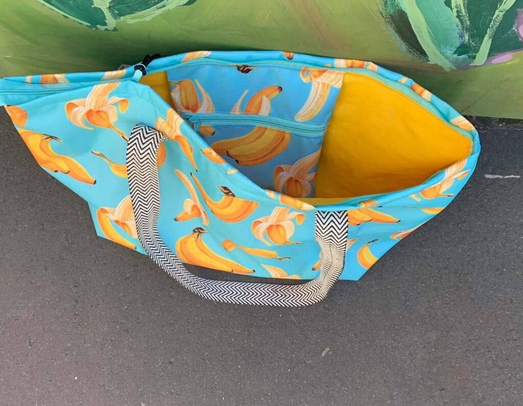 Néhány éve például banán mintás STRANDTÁSKÁT készítettem vízlepergető anyagból,