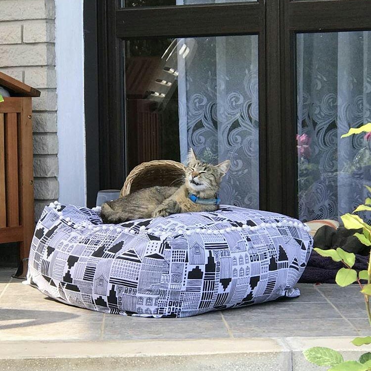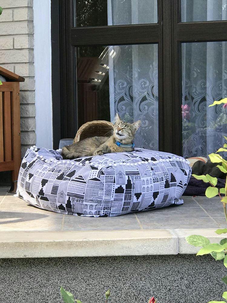 A takaró mellé dobj egy ülőpárnát, ami csak fokozza a kényelmed. Én ilyenen párnát varrtam maradék függönyanyagból, ami egy kicsit erőssebb vászon. Körben cipzáras, így levehető a huzat. Dísz szintén pom-pom szalag, mert imádom.