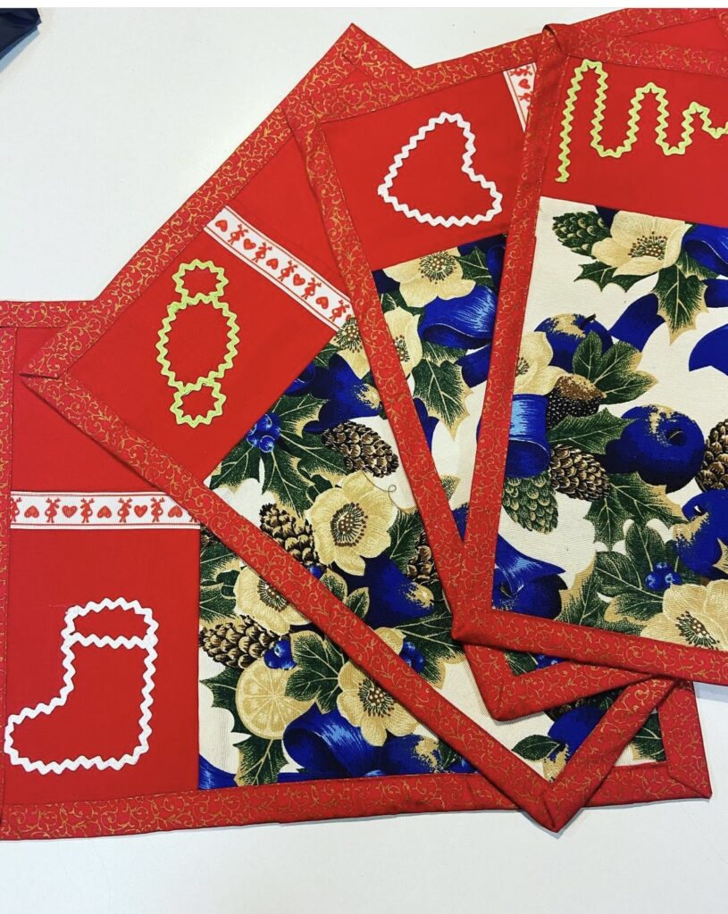 Minden évben varrok valami karácsonyi kiegészítőt, én ezzel adok magamnak fél-, egy-, maximum két órás minikimenőt, amikor mindenki tudja, hogy épp töltőn vagyok. Az elkészült karácsonyi holmik nagy része a fent emlegetett központi helyiségekbe – konyha és étkező – készül. És mikor a helyükre kerülnek 99,9%-ban garantálják, hogy a karácsonyi hangulat is megérkezik.