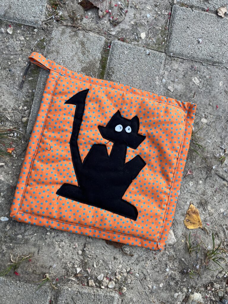 A macskás alátét rátétvarrással készült. Varrd meg te is és használd az évnek ebben az időszakában.