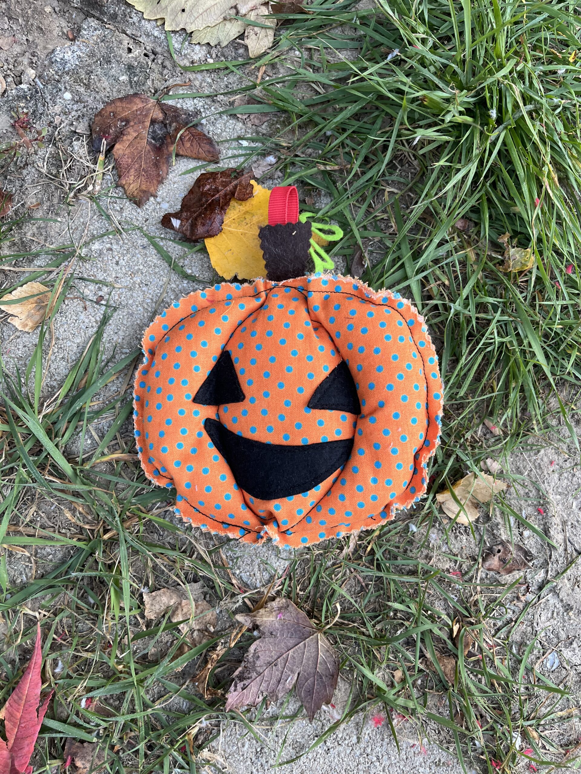 Ezt az egyszerű tökpárnát készítsd el több méretben, nem kell hozzá más, csak egy kevés maradék anyag. Szabj kör alakot, majd varrd körbe dupla cérnával fércelő öltéssel a szélét, húzd be és tömd ki vattával. Mikor elég a tömés, húzd be teljesen, varrd össze és ügyesen varrj bele gerezdeket úgy, hogy alulról felfelé a közepén átszúrod a tököt. Végül készítsd el a szárát, mi feltekertünk egy kevés anyagot és azt varrtuk oda.