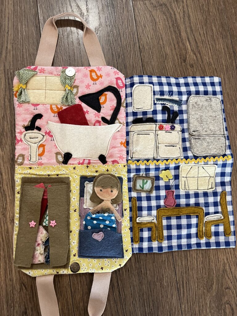 Imádom a kedves, cuki dolgokat, ezért hatalmas öröm volt számomra, hogy legkisebb lányomnak elkészíthettem egy saját készítésű babaházat. Ez a babaház nemcsak egy játék, hanem egy praktikus könyv, amit összehajtva kistáskaként bárhová magával vihet. Ráadásul a tervezésben és kivitelezésben a nagyobbik lányom is segített, így közösen alkottunk egy igazán szívhez szóló darabot.