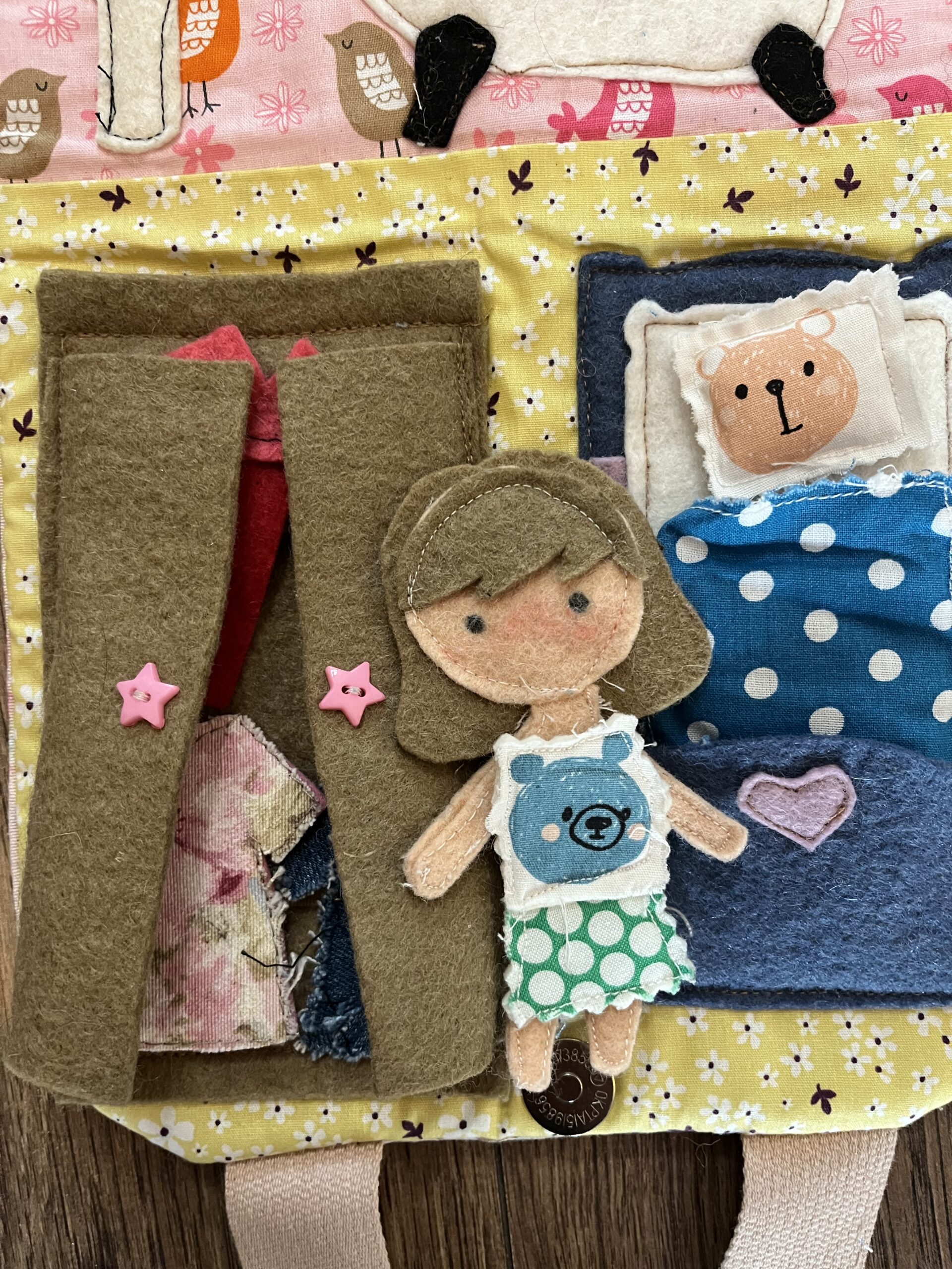 Imádom a kedves, cuki dolgokat, ezért hatalmas öröm volt számomra, hogy legkisebb lányomnak elkészíthettem egy saját készítésű babaházat. Ez a babaház nemcsak egy játék, hanem egy praktikus könyv, amit összehajtva kistáskaként bárhová magával vihet. Ráadásul a tervezésben és kivitelezésben a nagyobbik lányom is segített, így közösen alkottunk egy igazán szívhez szóló darabot.