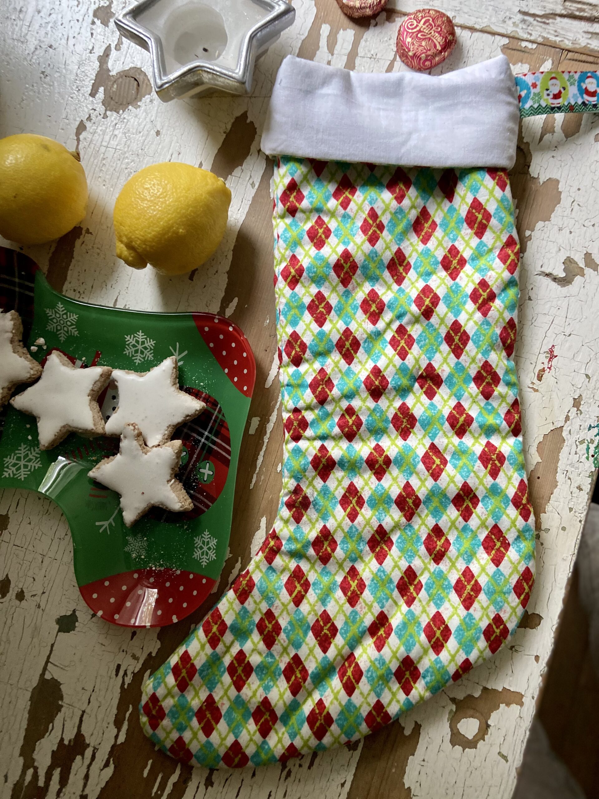 Klasszikus, ünnepi textilből varrt karácsonyi csizmát, amit díszíthetsz a saját stílusod szerint.