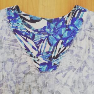 A következő bejegyzésben egy egyszerűbb nyakkör eldolgozást mutatok meg – tökéletes gyors nyári felsőkhöz vagy pólókhoz.
