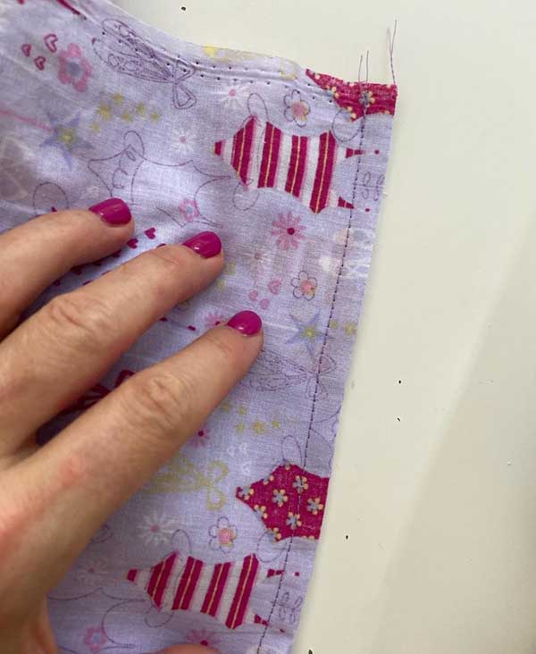 3. Szegés: az alját kétszer 1 cm-esen szegd fel, majd a két oldalát is.