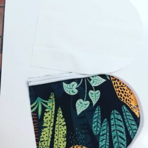 Szegőpánt . Az anyag keskenyebb oldalán levágunk egy félkört. (tányér lehet a segítséged.)