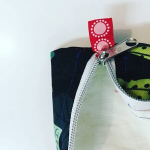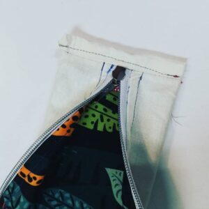 1. Felvarrjuk a cipzárat a külső anyagra, majd a béléssel összevarrjuk.