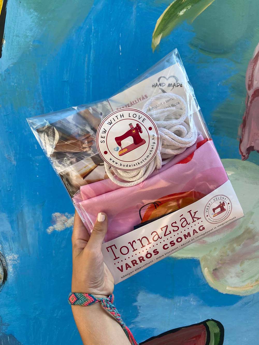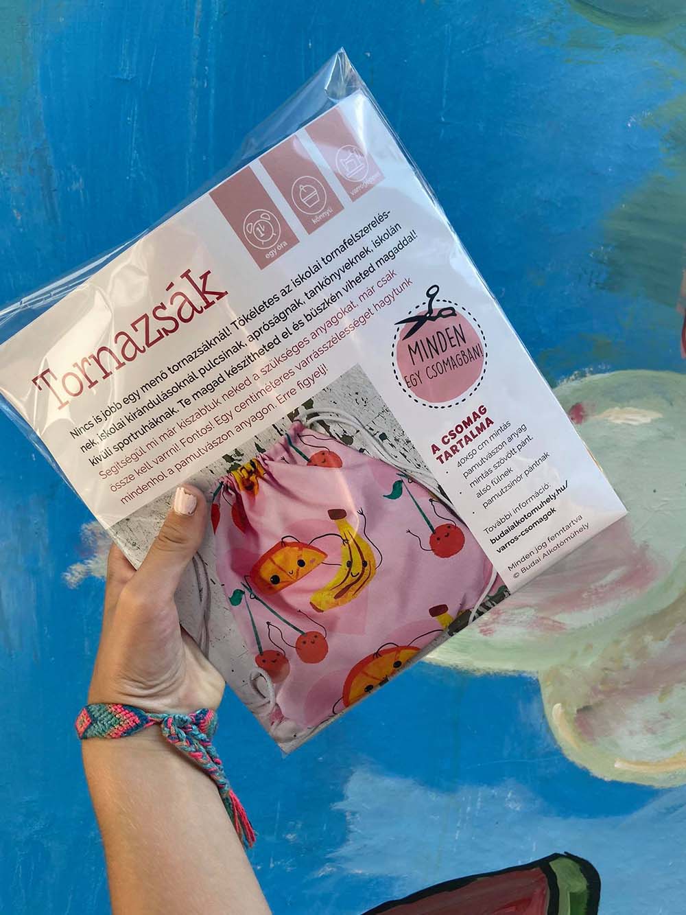 Vidám egyéni mintával nyomott anyag, pamut zsinór, leírási útmutató mind mind egy csomagban !