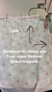 - A bélés alján hagyjunk kb. 10 cm-es nyílást a kifordításhoz.