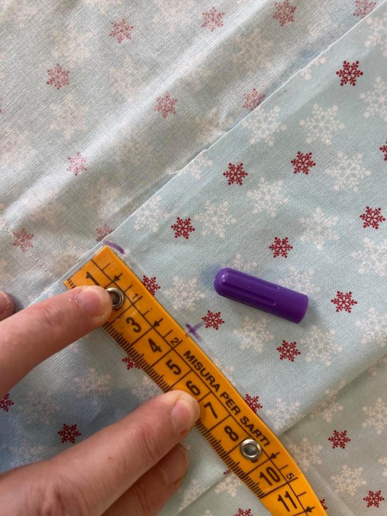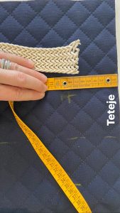 - A vállpántot a táska tetejétől 8 cm-re, a közepétől 7 cm-re helyezzük el.