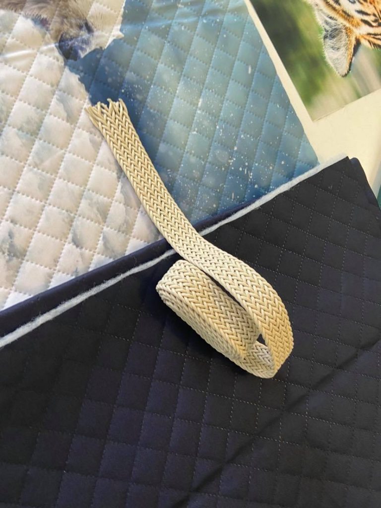 Ez a modell bélelt, steppelt, vízlepergető anyagból készül, de ha nincs steppelt anyagod, merevítőt is varrhatsz bele, hogy legyen tartása.